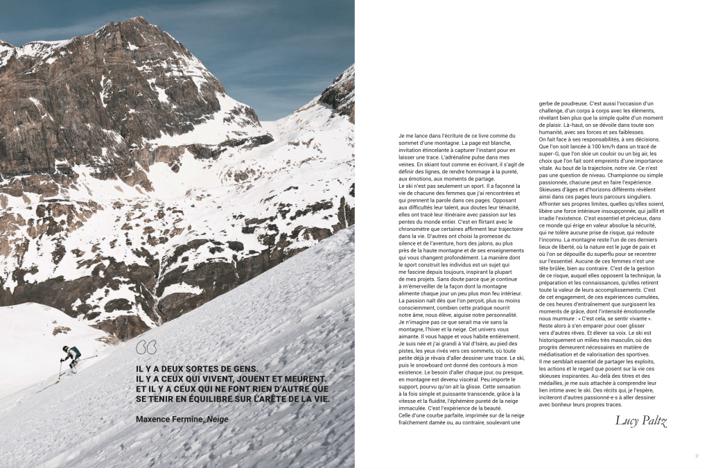 Passionnée par les sports de glisse depuis toujours, écrire un livre sur la montagne était une évidence. Portée par l’envie de faire entendre la voix des sportives, de donner aux athlètes féminines l’exposition médiatique qu’elles méritent, j’ai rencontré 27 skieuses inspirantes.